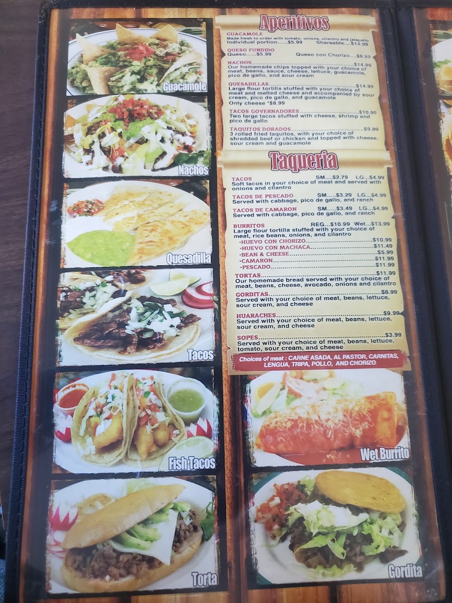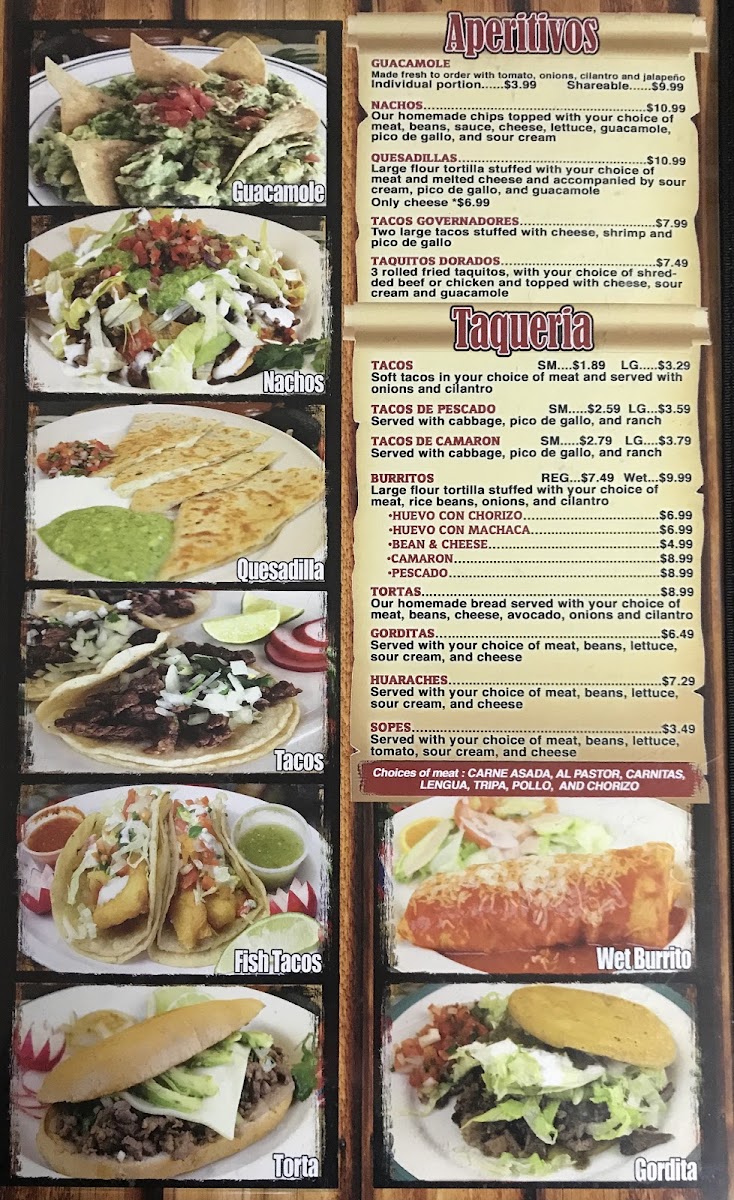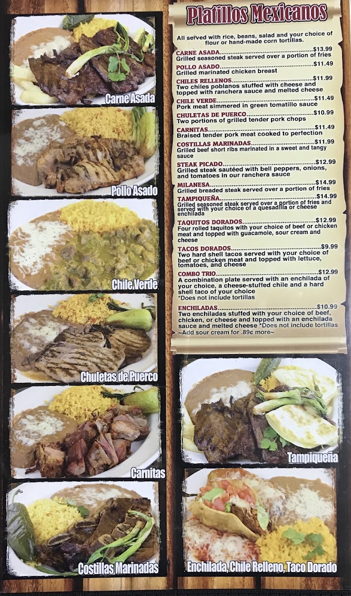 Served with choice of meat, beans, lettuce, tomato, sour cream and cheese.