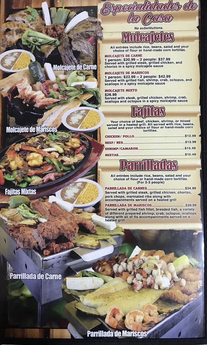 Homemade chips topped with your choice of meat, beans, sauce, cheese, lettuce, guacamole, pico de gallo, and sour cream.